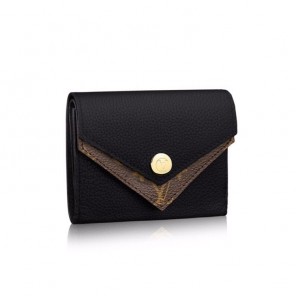 Combining fine-grained calf leather with iconic Monogram canvas, this stylish, trendy compact wallet coordinates with Louis Vuitton's Double V bag. The original double flap conceals a secret pocket, which is ideal for tickets or coins.