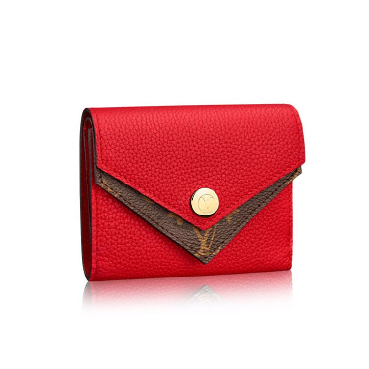 Combining fine-grained calf leather with iconic Monogram canvas, this stylish, trendy compact wallet coordinates with Louis Vuitton's Double V bag. The original double flap conceals a secret pocket, which is ideal for tickets or coins.