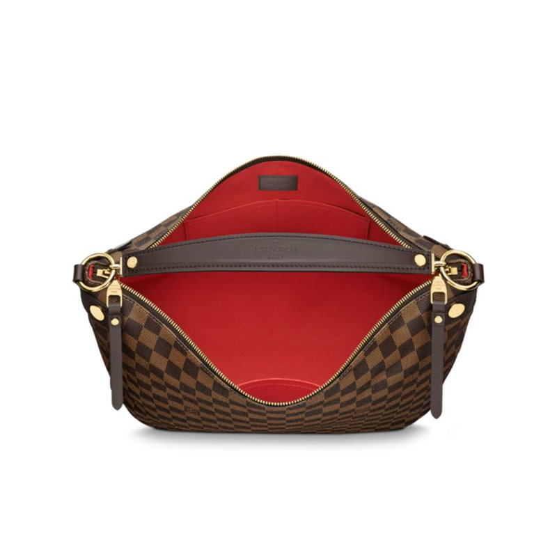 The Duomo Hobo in Damier Ebene defines understated luxury, with its generous lines and supple hand. Refined details – stamped metal rivets, leather zip pulls – add to the bag’s allure, yet it is lightweight and body friendly, ideal for everyday wear.