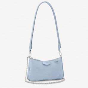 The Easy Pouch on Strap is a sleek design in grained Epi leather, discreetly embossed with the LV Initials. Large enough to hold everyday essentials, this on-trend model is notable for its versatility, featuring a removable chain and a removable, adjustable leather strap for shoulder or cross-body carry. The D-ring on the outside can be used to attach a charm.