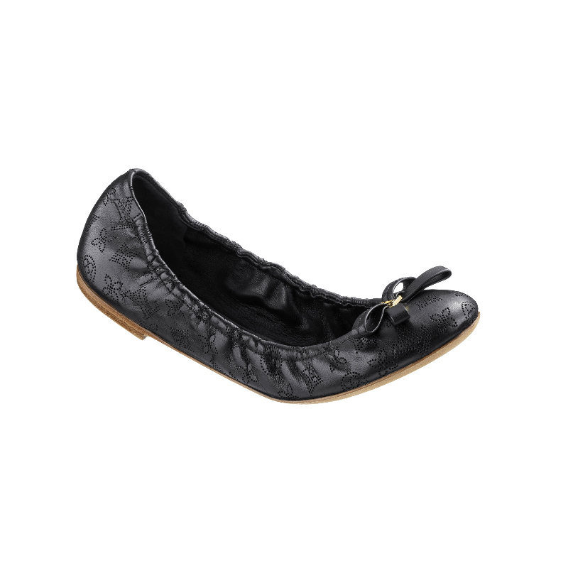 This stylish ballet pump in extra-supple nappa leather is signed with refined Monogram-pattern perforations and embellished with a feminine bow.