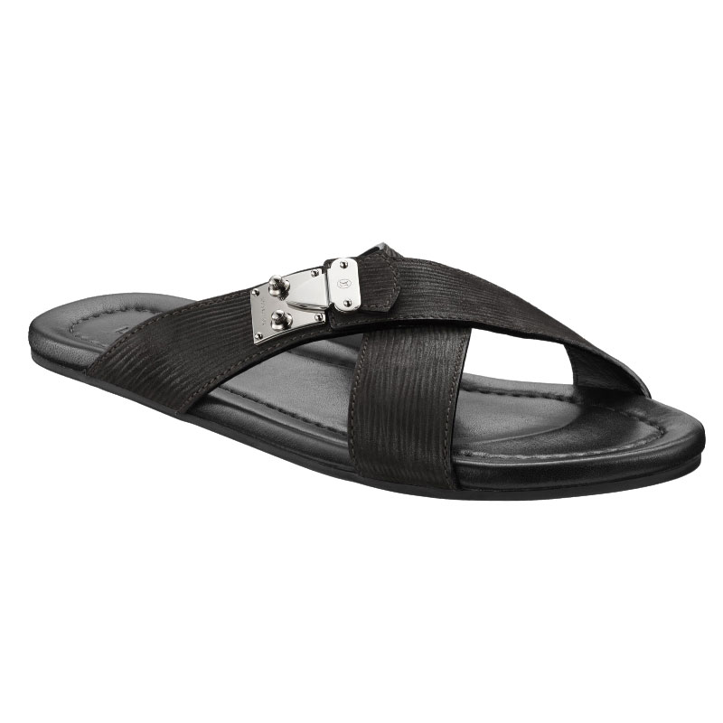 A Louis Vuitton S-lock and rivets accessorize this casual chic mule in refined Epi suede leather with tonal stitching. A padded insock ensures maximum comfort.