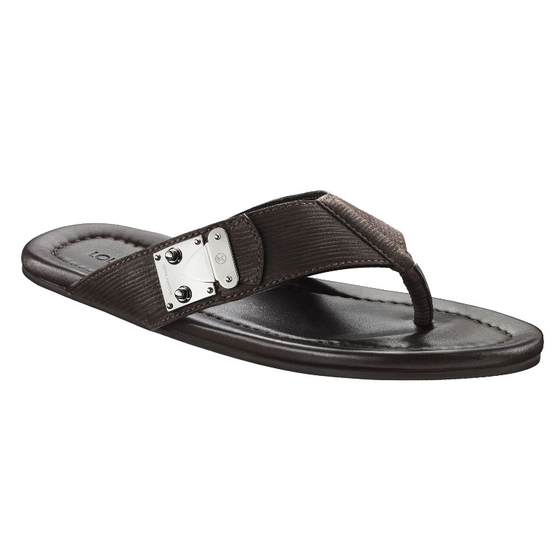 A Louis Vuitton S-lock and rivets accessorize this casual chic thong in refined Epi suede leather with tonal stitching. A padded insock ensures maximum comfort.