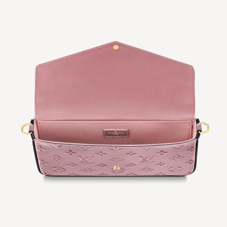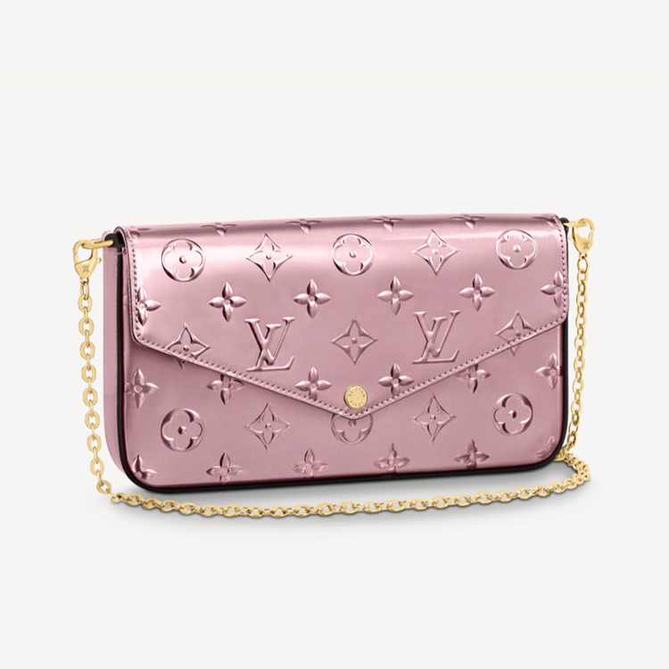 The chic, feminine design of the F茅licie Pochette is complemented by Monogram Vernis patent leather, debossed with Louis Vuitton's signature Monogram pattern. This versatile pouch has a removable chain, transforming it from a shoulder bag into a clutch. It also features two removable pockets, one with a zip, the other with card slots.