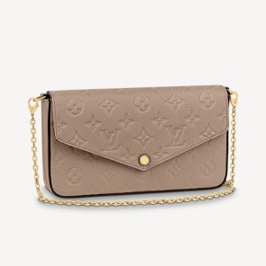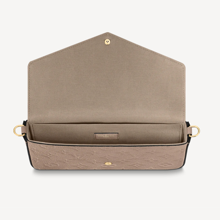The Pochette F茅licie is crafted from Monogram Empreinte leather, embossed with Louis Vuitton's signature Monogram pattern. Designed to adapt to modern lifestyles, this envelope-style pouch contains a spacious compartment with two removable pockets: one zipped, one with card slots. It can also be carried in different ways thanks to a removable gold-tone chain.