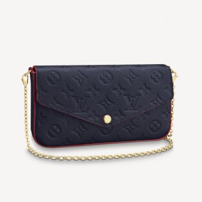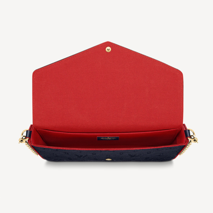 The Pochette F茅licie is crafted from Monogram Empreinte leather, embossed with Louis Vuitton's signature Monogram pattern. Designed to adapt to modern lifestyles, this envelope-style pouch contains a spacious compartment with two removable pockets: one zipped, one with card slots. It can also be carried in different ways thanks to a removable gold-tone chain.