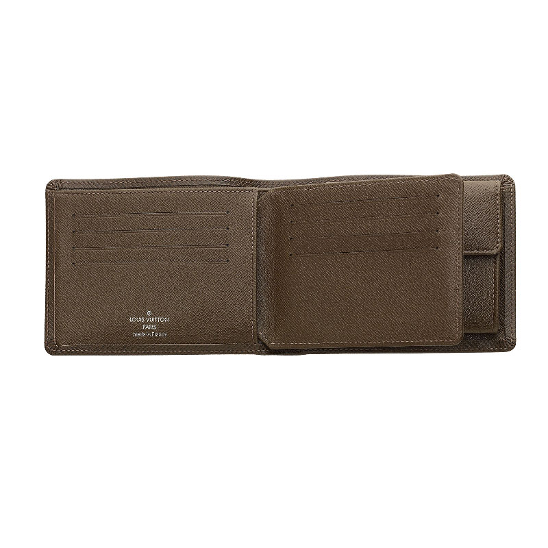 - Taiga leather discretely stamped with the LV initials and leather lining