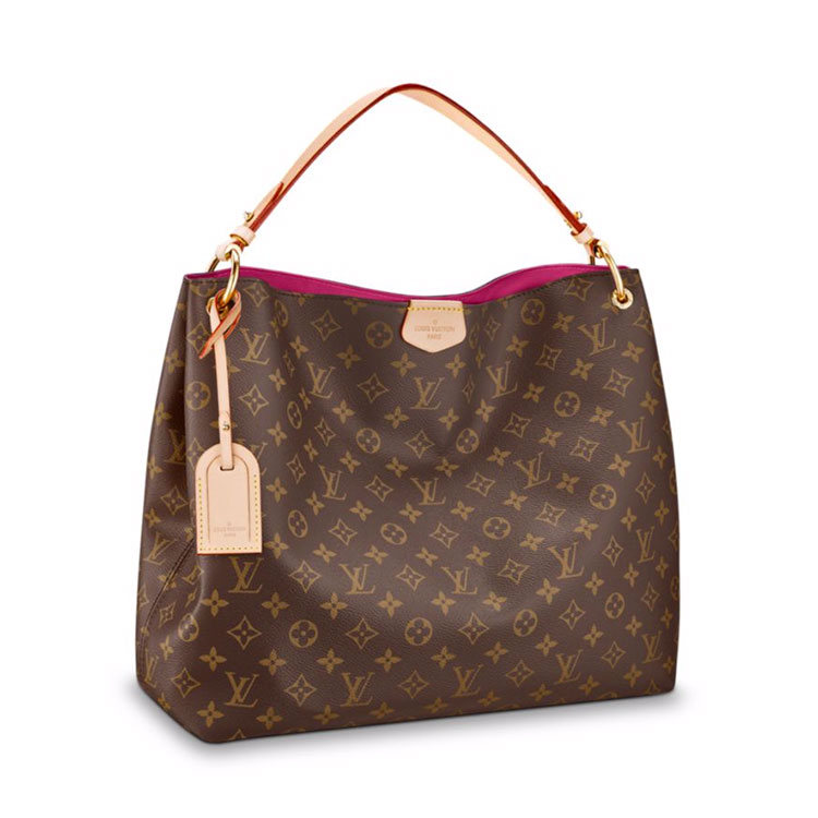 The spacious Graceful hobo has a lightweight, body-friendly design that makes it perfect for every day. The flat handle sits easily on the shoulder, while emblematic details, such as the leather name tag, reference Louis Vuitton's travel heritage.
