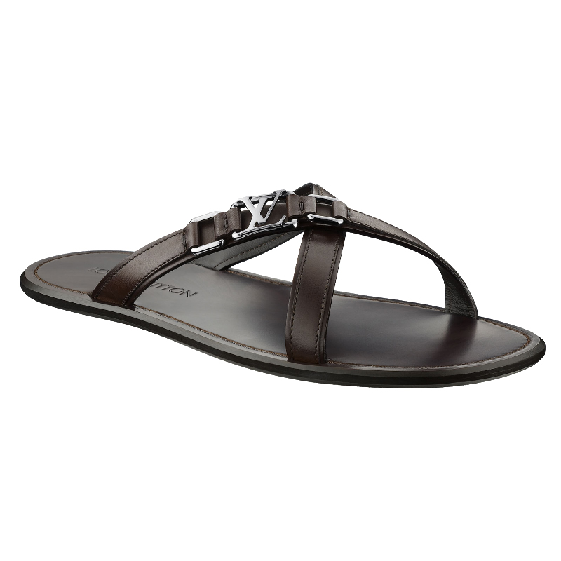 Slender straps in fine calf leather are accessorized with the iconic LV initials on this elegant mule, which is a timelessly stylish choice for hot summer days.