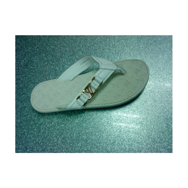 Slender straps in fine calf leather are accessorized with the iconic LV initials on this elegant thong, which is a timelessly stylish choice for hot summer days.