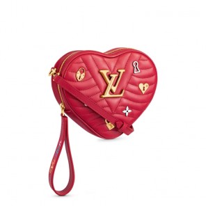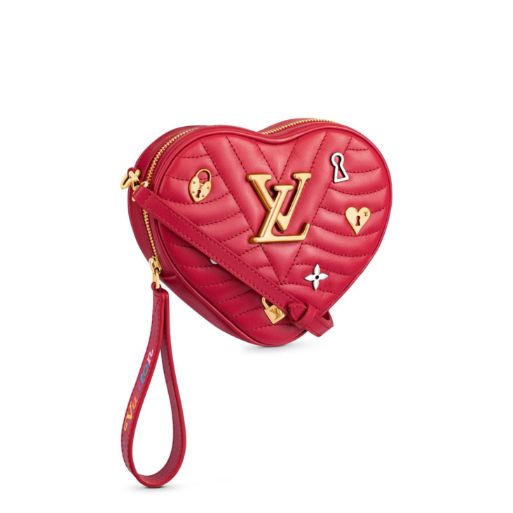 The New Wave Heart Bag handbag is a heart-shaped bag in quilted calf leather, signed with LV Initials in aged-gold finish and decorated with a series of House symbols from the LV Love Lock Story. Its playful shape is complemented by the colorful “Vuitton” on the handle. It can be carried by hand with its removeable handle, cross-body thanks its leather strap, or on the waist with its belt loop.