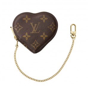 Bright, cheerful and vibrant, the Heart Coin Purse in Monogram Leopard is the epitome of punk glamour. Supple Monogram canvas, a vivid leather lining and bold golden brass enhance its romantic shape.
