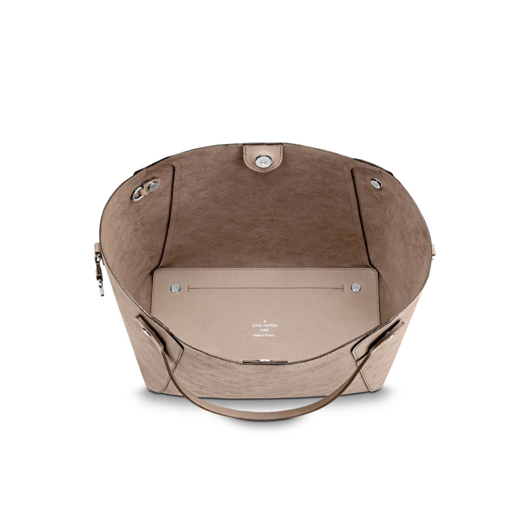 The Hina is two bags in one: gather in the sides on a central snap hook, and the tote transforms into a trendy bucket style. Crafted of perforated calf leather, it is light and comfortable, ideal for everyday wear. The MM model accommodates daily essentials as well as documents and files.