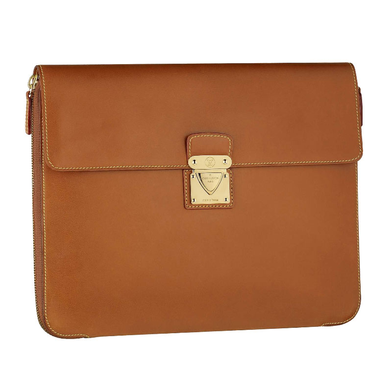 This slim and elegant multi-functional business portfolio is crafted in Nomade leather. It has a distinctive press lock closure and pockets to hold essentials including PDA, battery and mouse.