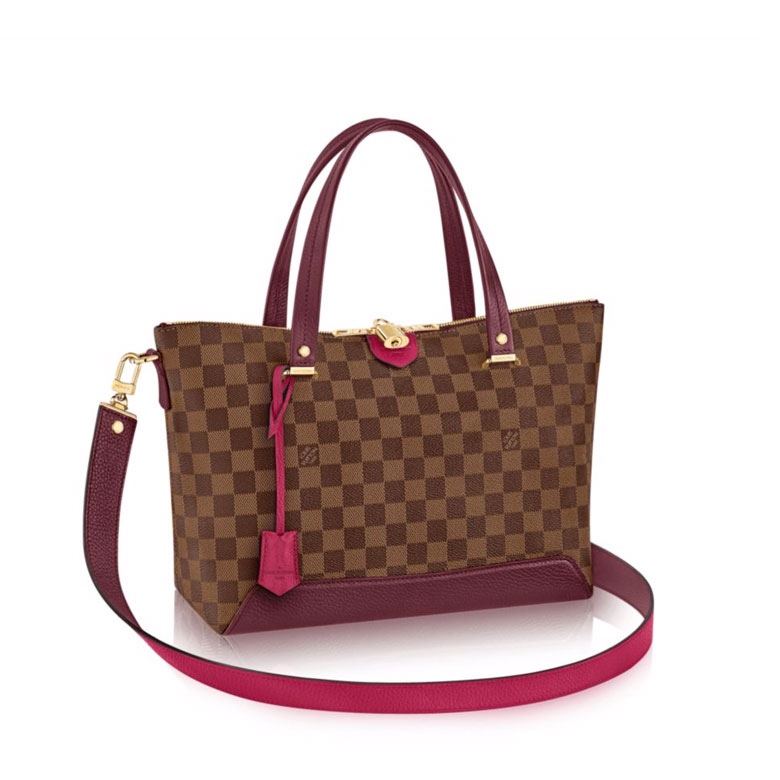 Timeless design and chic, sporty style are the hallmarks of the new Hyde Park bag in Damier Ebene canvas with Cuir Taurillon trim. This contemporary carryall is roomy, functional and versatile, with twin leather handles and a removable shoulder strap.