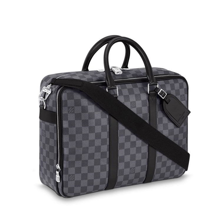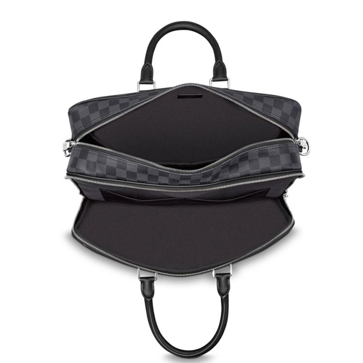 Ideal for the business traveler, the Icare in Damier Graphite canvas with the classic leather nametag and iconic stripes gives you that timeless briefcase style. It鈥檚 ultra-functional with numerous compartments for a laptop, files and even some clothes. The removable Horizon strap means it fits perfectly on the Horizon luggage for hands-free travel.