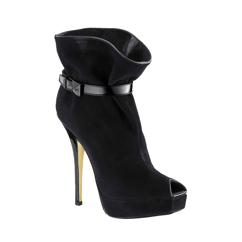 Inspired by the directional styles seen on Louis Vuitton's Spring/Summer 2009 catwalk, these striking ankle boots in suede with patent leather trim will give any look an avant-garde twist.