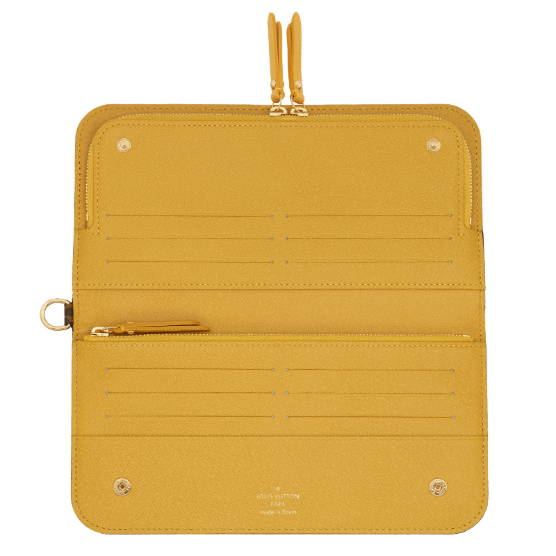 The Insolite wallet is made from House classic Monogram canvas. The double zipper opening, with leather zip pulls, gives access to coins without opening the wallet completely.