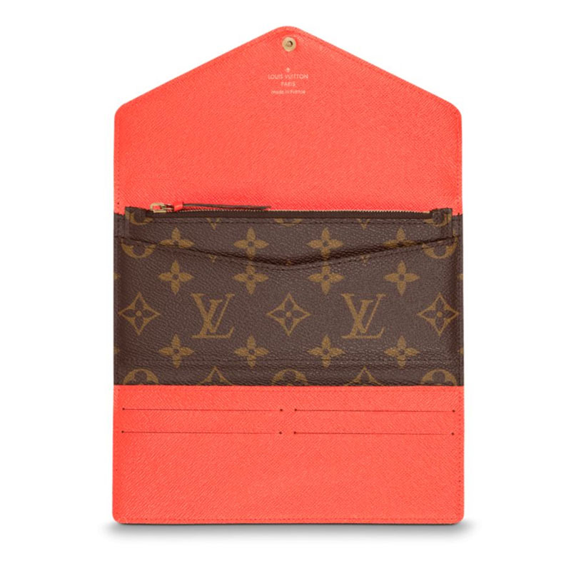Inspired by the House's first wallets, the Josephine is a playful and modern variation of a classic design in supple Monogram canvas with a fresh lining color. Its long flat shape slips easily into any pocket or handbag.