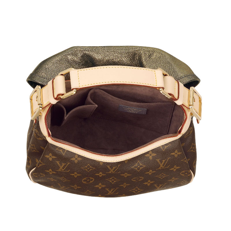 - Monogram canvas, natural cowhide and metallic leather trimmings, microfiber lining
