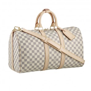 The classic and iconic Louis Vuitton Keepall in a beautiful Damier canvas. The geometric pattern delivers an understated elegance and a touch of sophistication. The perfect travel accessory.
