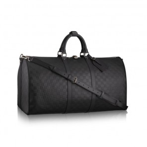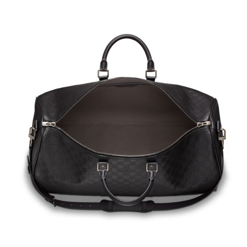 Travel in fine style with the understated Keepall 55 Bandouliere. In luxuriously soft Damier Infini leather, its generous interior and practical shoulder strap make it a sleek contemporary choice.