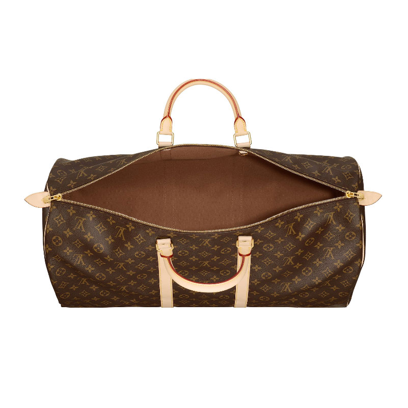 The Keepall is a classic of the travel bag collection. This largest version in Monogram canvas features rounded leather handles, a double zipper and a removable shoulder strap.
