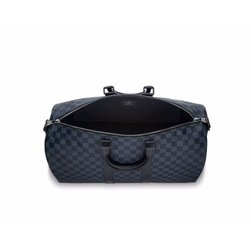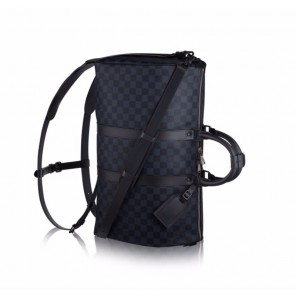 In Damier Cobalt canvas, Louis Vuitton's iconic Keepall 45 travel bag is reengineered. To this timelessly elegant and distinctive shape, the backpack twist adds a very trendy touch. Spacious, lightweight, versatile, the Keepall epitomizes the art of travel.