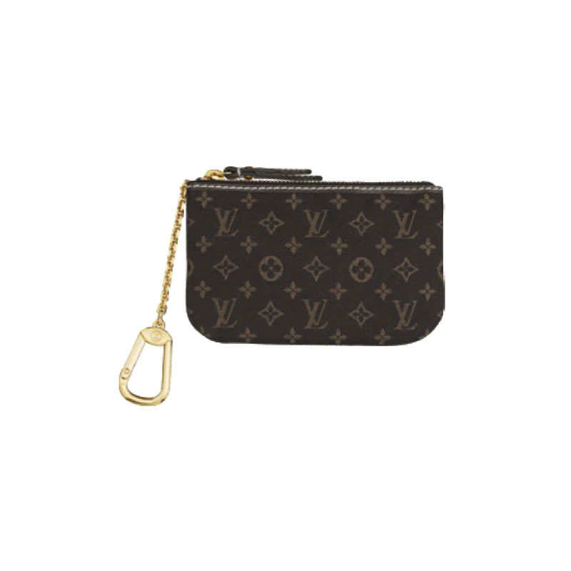Carrying keys and spare change has never been so stylish. The Key Pouch in soft Monogram Idylle canvas is beautifully complemented by calfskin leather trimmings and shiny golden brass hardware.