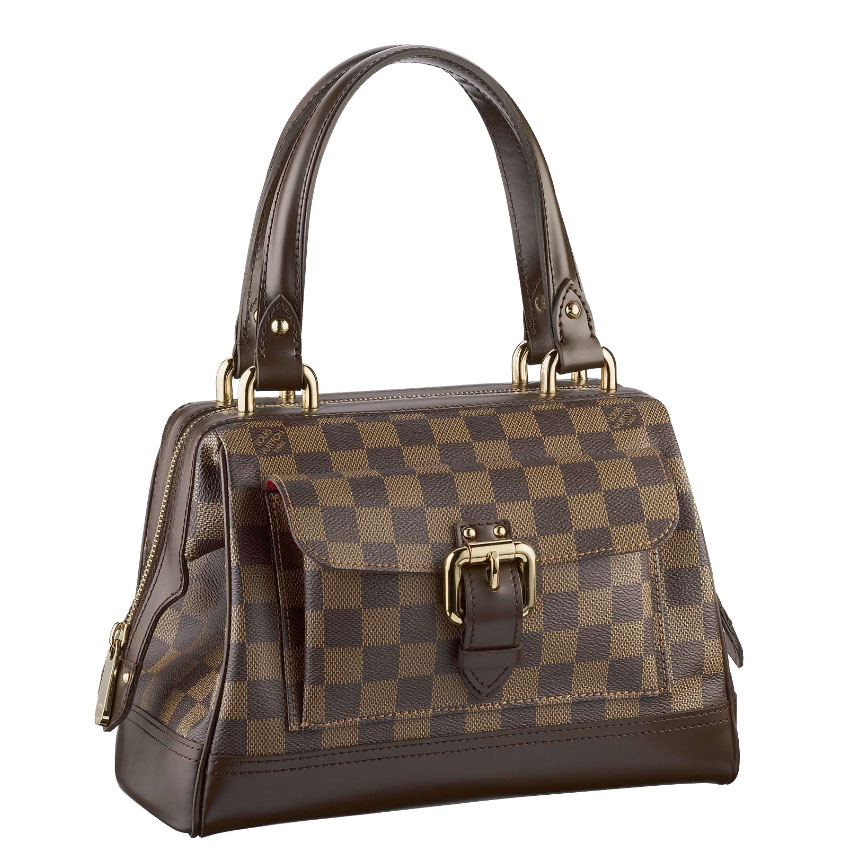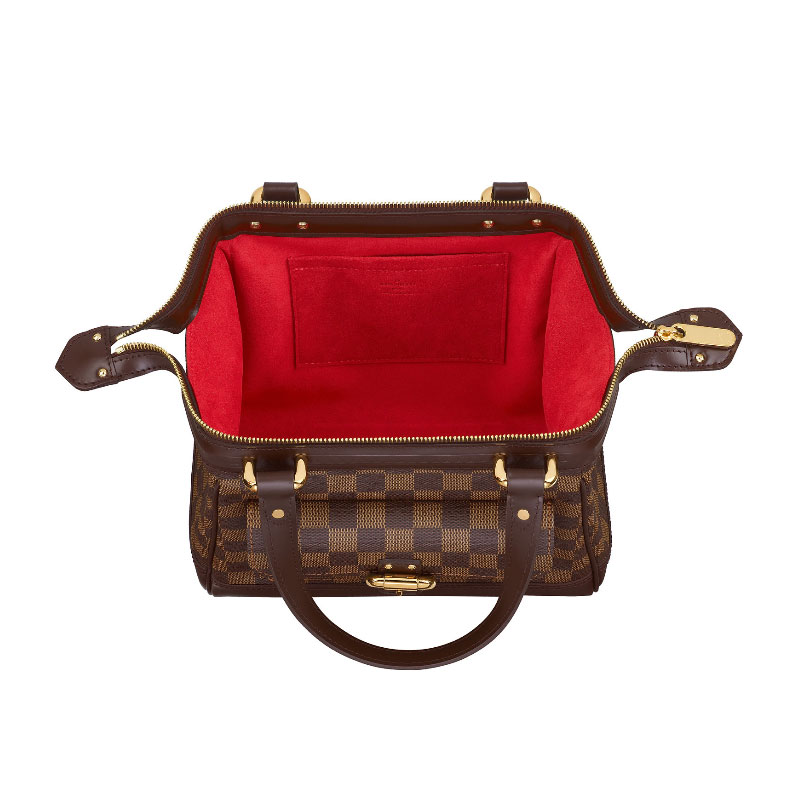 - Damier canvas, red microfiber lining and smooth leather trimmings