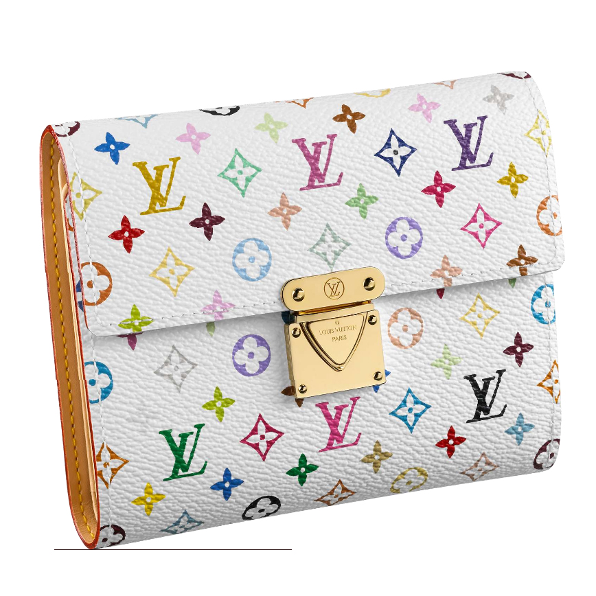 This wallet in Monogram Multicolor canvas created by Takashi Murakami has a press lock closure. It can hold up to 9 credit cards, change, bills and other papers.
