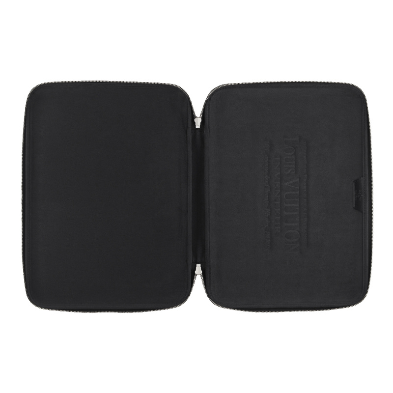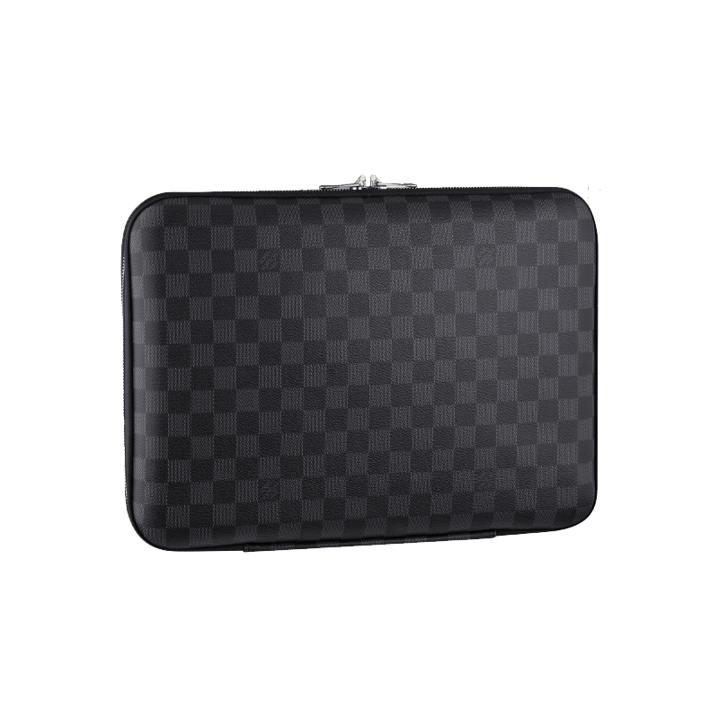 - Damier Graphite canvas, microfiber lining- Silver brass pieces- Double zipper closure- Foam-lined protective laptop compartment- This computer sleeve fits for 13