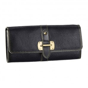 - Suhali leather outlined with contrasting stitching, monogram pattern polyester lining and golden brass pieces