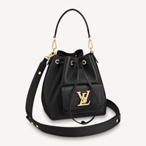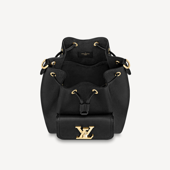 The Lockme Bucket bag in grained calf lather is immediately recognizable by its faceted LV turn lock on the front pocket. This supple bag with curvy proportions is comfortable to carry. The removable and adjustable strap in leather means it can be worn on the shoulder and cross-body, while a removable top handle enables hand and elbow carry.