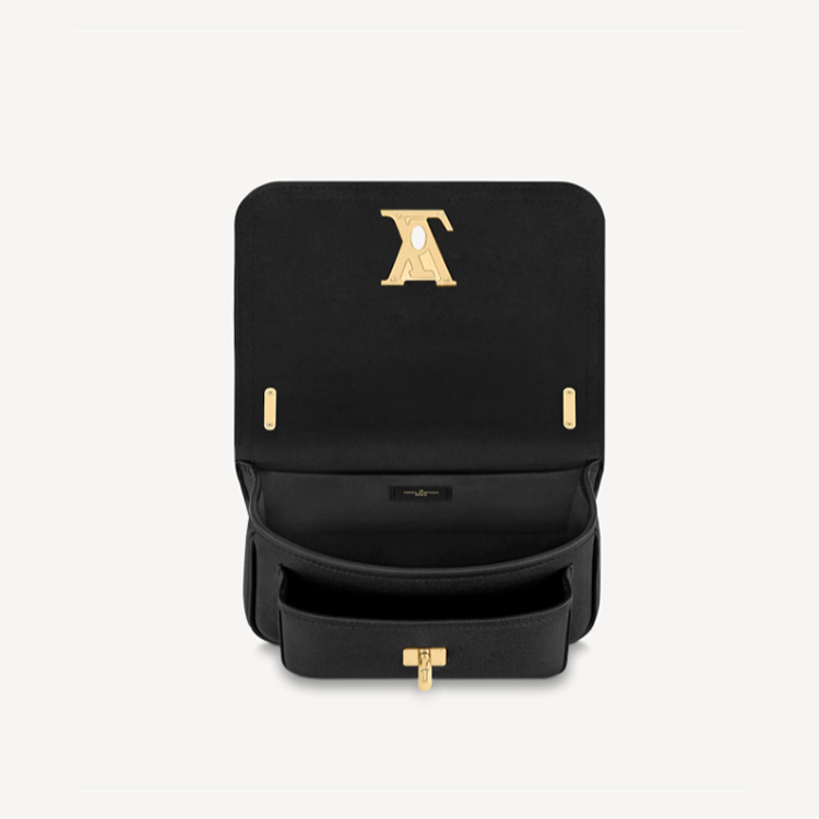 The Lockme Chain PM handbag is made from grained calf leather. Its sleek lines are signed with the iconic LV turn lock, reimagined in a stylish facetted design. It offers comfortable shoulder and crossbody carry, thanks to its sliding chain with a long leather shoulder pad. Front and flat back pockets deliver easy access to belongings.