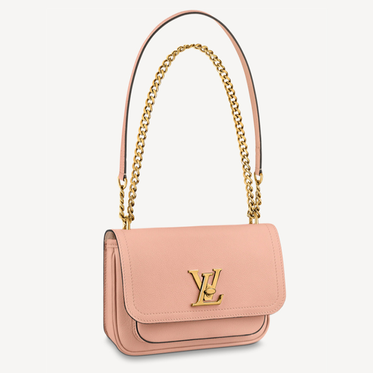 The Lockme Chain PM handbag is made from grained calf leather. Its sleek lines are signed with the iconic LV turn lock, reimagined in a stylish facetted design. It offers comfortable shoulder and crossbody carry, thanks to its sliding chain with a long leather shoulder pad. Front and flat back pockets deliver easy access to belongings.