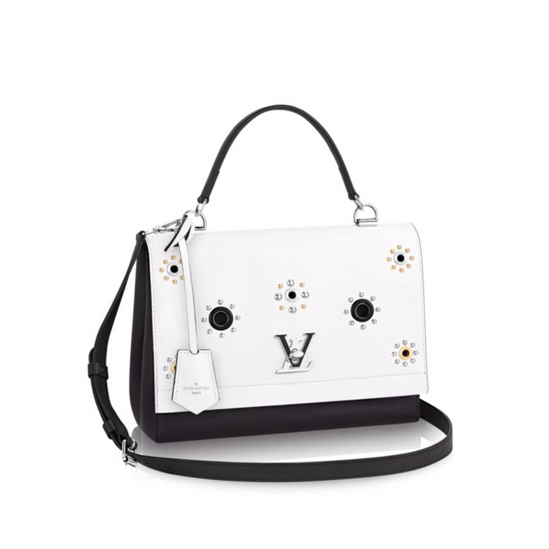 The Lockme II, with its modern and practical shape is reinterpreted in a Mechanical Flowers version. The exclusive soft natural leather with its fine grain and sensual hand is embellished by golden and silver metallic studs giving a rock touch to the iconic Monogram Flowers. The Black and White colors offer a timeless option for a young, chic and stylish attitude.