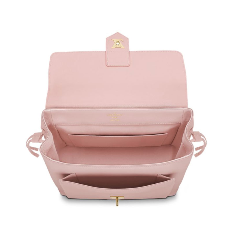 The newest must-have handbag from the House of Vuitton is the utterly feminine Lockme in touchable, fine-grained calfskin. Perfect for petite frames, Lockme PM features a subtle signature twist-lock in gleaming golden brass. The curved top handle lends itself to a ladylike elbow carry, but it also easily slips over the shoulder. Leather laces adjust the bag鈥檚 capacity to one鈥檚 taste or needs. Practical pockets inside and out make Lockme an ideal everyday companion.