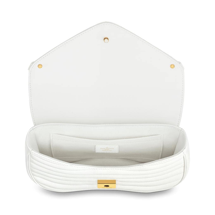 Introducing the Louis Vuitton New Wave Chain Bag MM, crafted from smooth quilted calfskin. On-trend details – a detachable handle signed “Louis Vuitton,” edgy hardware with an aged-metal finish – make this a statement piece that is also perfect for every day. The sliding chain adjusts the drop for long-, short-shoulder or cross-body wear.