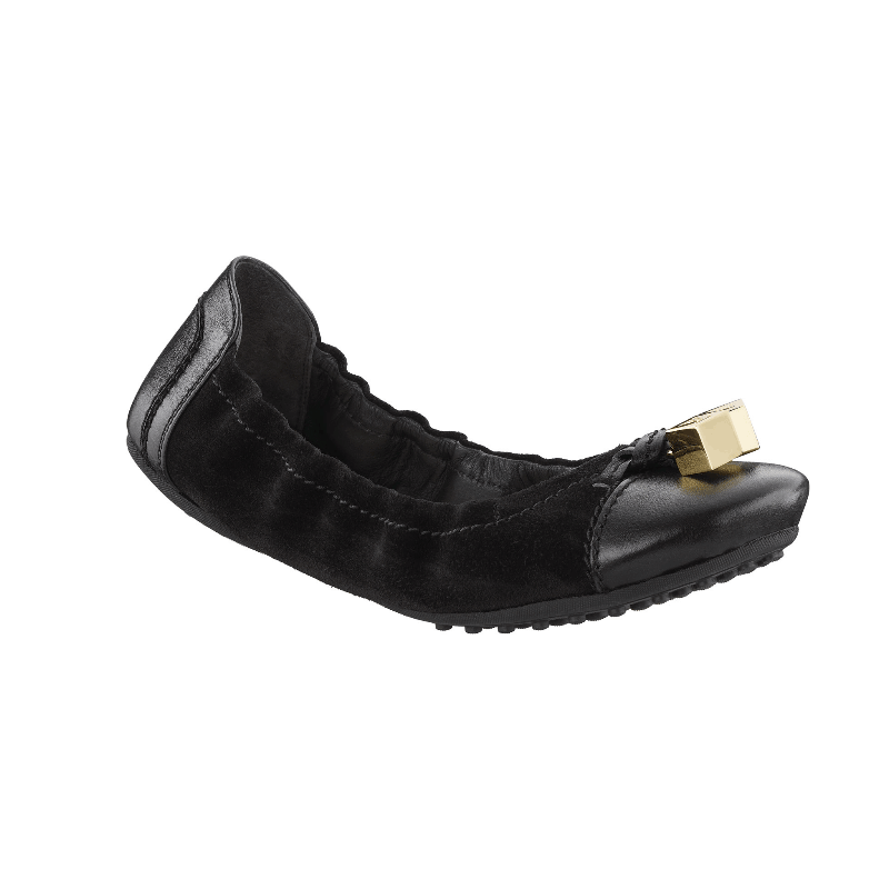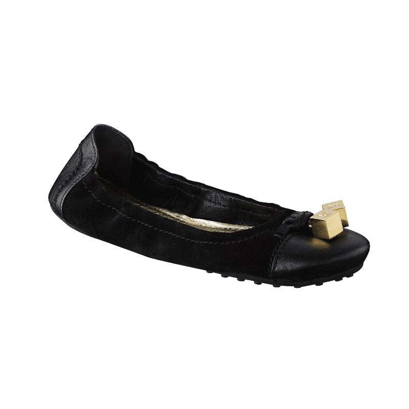 In velvety suede with metallic leather trim, these ballet pumps are a must-have in any wardrobe. Accessorized with LV-engraved cubes, they feature a supple sole and elasticized sides for a super-snug fit.