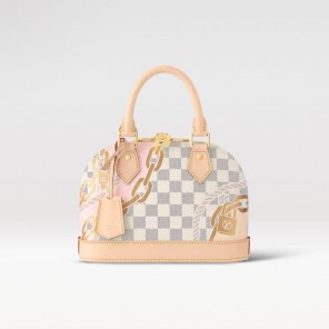 The Art-Deco lines of this Alma BB handbag are revisited in a unique version of Damier Azur canvas featuring a nautical print of ropes and chains. Ideal for a weekend at the Hamptons, the Alma is equipped with a removable and adjustable strap, in addition to top handles, for cross-body carry.