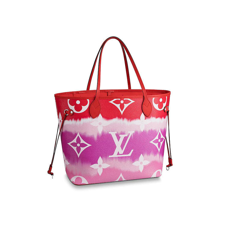 Inspired by the ancient Japanese technique of knotting and folding fabric before dyeing it, the LV Escale Collection brings a touch of summer to the Neverfull MM tote in a Tie-Dye Monogram canvas. Tighten the laces and this versatile tote bag becomes a smaller, stylish city bag.