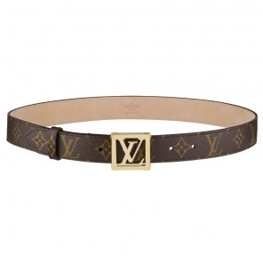 This feminine belt in Louis Vuitton's iconic Monogram canvas features a new version of the LV Initiales buckle inspired by an illustration dating back to 1910.
