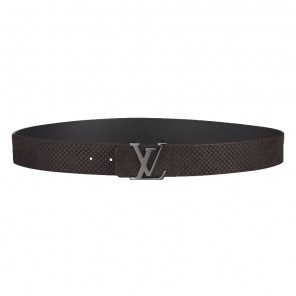Coordinating with Louis Vuitton's Spring/Summer 2011 men's shoe collection, this elegant suede calf leather belt is embossed with the historic Damier pattern. It is complemented by the iconic LV initials buckle in a stylish ruthenium finish.
