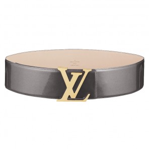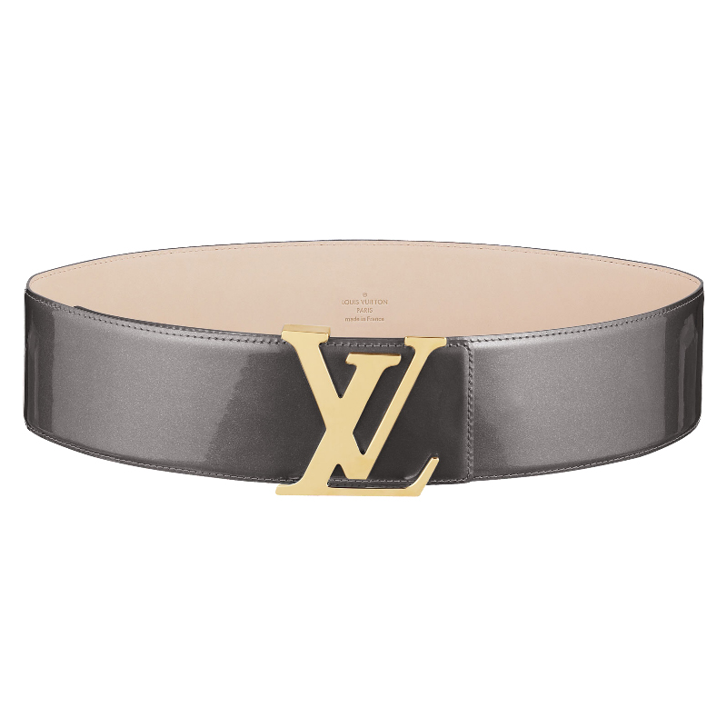 With its outsize iconic LV buckle, this wide belt in richly Colored patent leather cinches the waist to create a very feminine, structured look that is ideal for evening.
