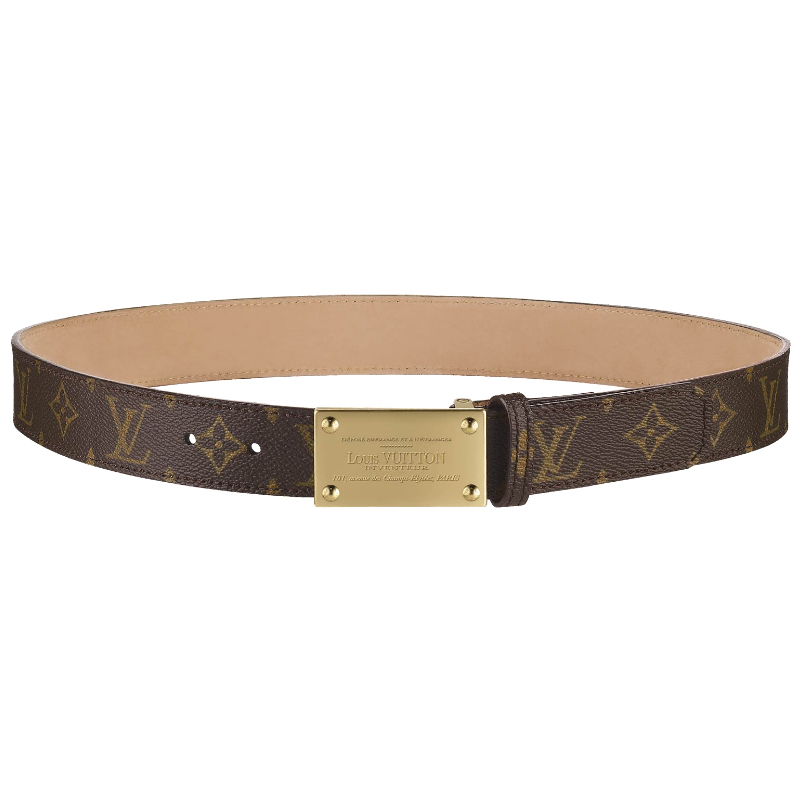 This casual chic belt in Monogram canvas features the historic "Louis Vuitton Inventeur" plaque, dating back to 1875, in a feminine shiny finish that coordinates with the leather goods lines.