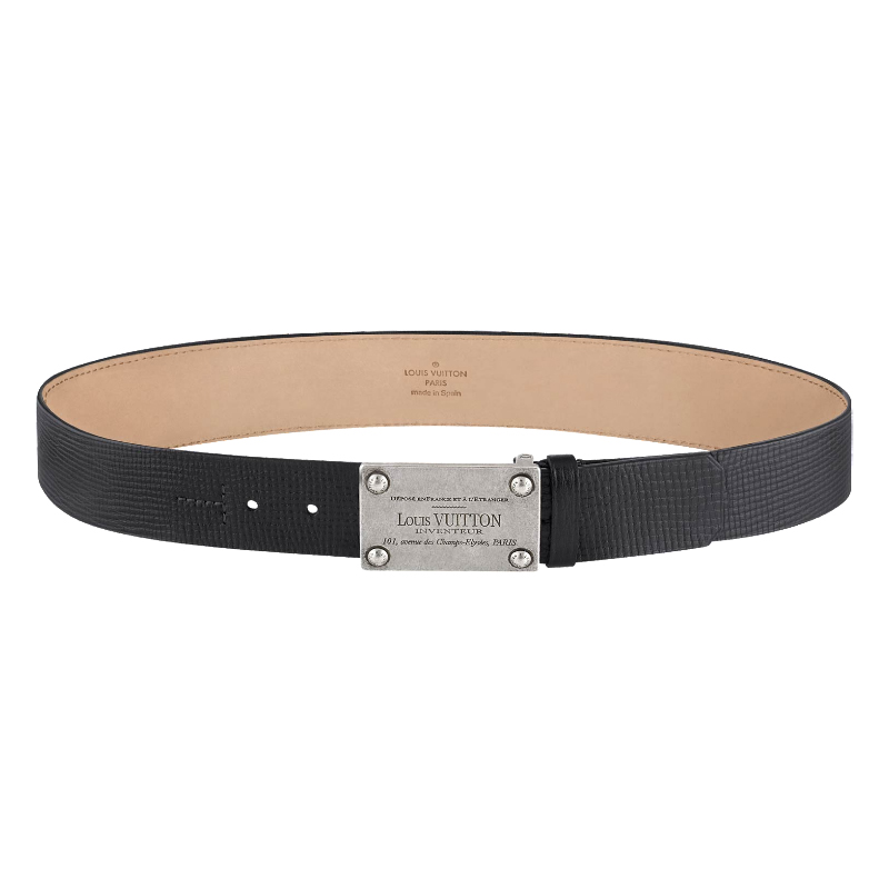 This casual chic mid-waist belt combines supple, naturally grained Utah leather with a striking antiqued finish buckle inspired by the 'Louis Vuitton Inventeur' plaque dating back to 1875.
