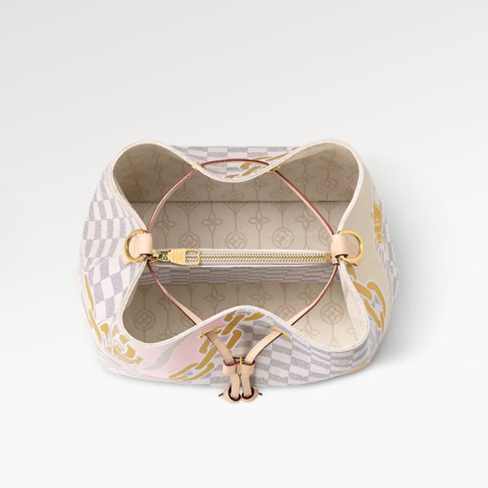 The body-friendly N茅oNo茅 MM bucket bag takes on a summery feel in Damier Azur canvas, livened up with a bold yet feminine nautical print of ropes and chains. The bag鈥檚 strap can be adjusted for long- and short-shoulder carry as well as cross-body wear. The inside zipped pocket keeps belongings secure.