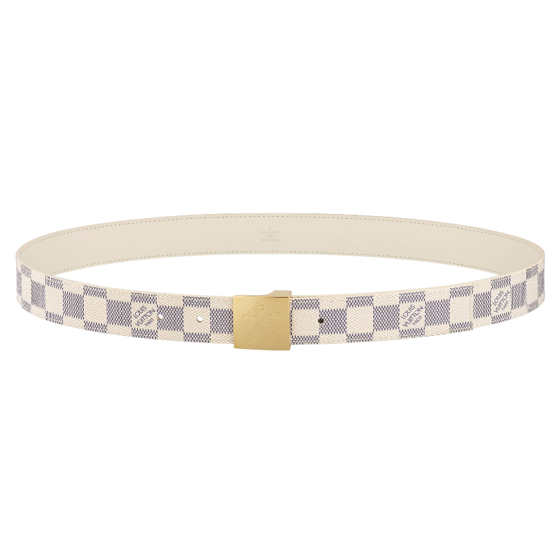 This mid-waist belt in Damier canvas sports a square gold-finish buckle with the oblique Louis Vuitton Paris signature. Reversible, it offers two casual chic looks in one.