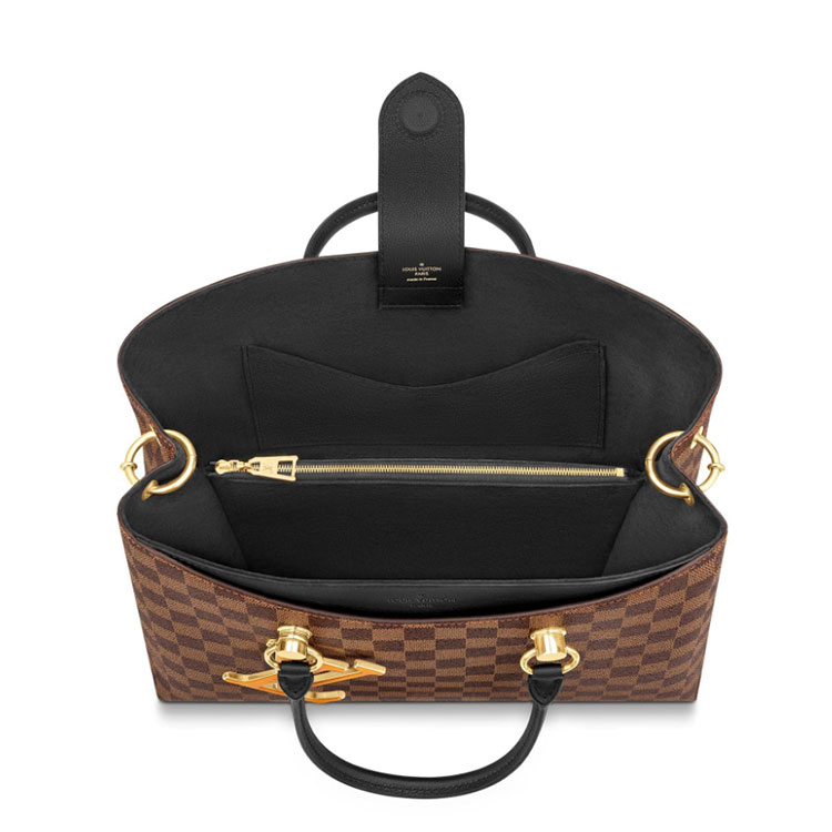 Combining practicality with elegance, the LV Riverside tote is an ideal work-to-weekend accessory. It is crafted from Damier Ebene canvas with intricate details constructed from grained Taurillon leather. The twin Toron handles feature gold-finished mounts, with an LV charm in Epi-textured resin adding a signature flourish.